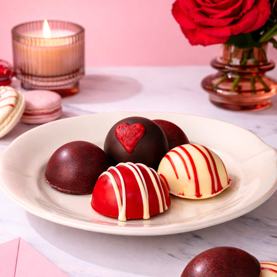 Dark Chocolate Brownie and Mallow Raspberry Heart & Love Bite (Dark Chocolate (62.1%) (Cocoa Mass, Sugar, Cocoa Butter, Emulsifier: Soya Lecithin, Natural Vanilla Flavouring), Brownie ((Sugar, Pasteurised Free Range Whole Egg, Butter (Milk), Cocoa Mass, Cocoa Butter, Fat-Reduced Cocoa Powder, Wheat Flour (Wheat, Calcium Carbonate, Iron, Niacin, Thiamine), Cocoa Powder, Emulsifier: Soya Lecithin, Vanilla Extract, Acidity Regulators (E525, E501(i)), Salt), Italian Meringue (Sugar, Egg White Powder, Water, Vanilla Flavouring (Water, (E1520), Caramel Sugar Syrup, Thickener (E415), Acidity Regulator (Citric Acid), Preservative (E202), Glycerol (E442)), Raspberry Seedless Jam (5.4%) (Glucose Syrup, Sugar, Concentrated Raspberry Purée, Water, Gelling Agent: Pectin (E440), Acidity Regulators: Citric Acid (E330), Trisodium Citrate (E331), Colour: Anthocyanins (E163) ((Sulphur Dioxide (Sulphites)), Flavouring, Red Chocolate Decoration (1.7%)