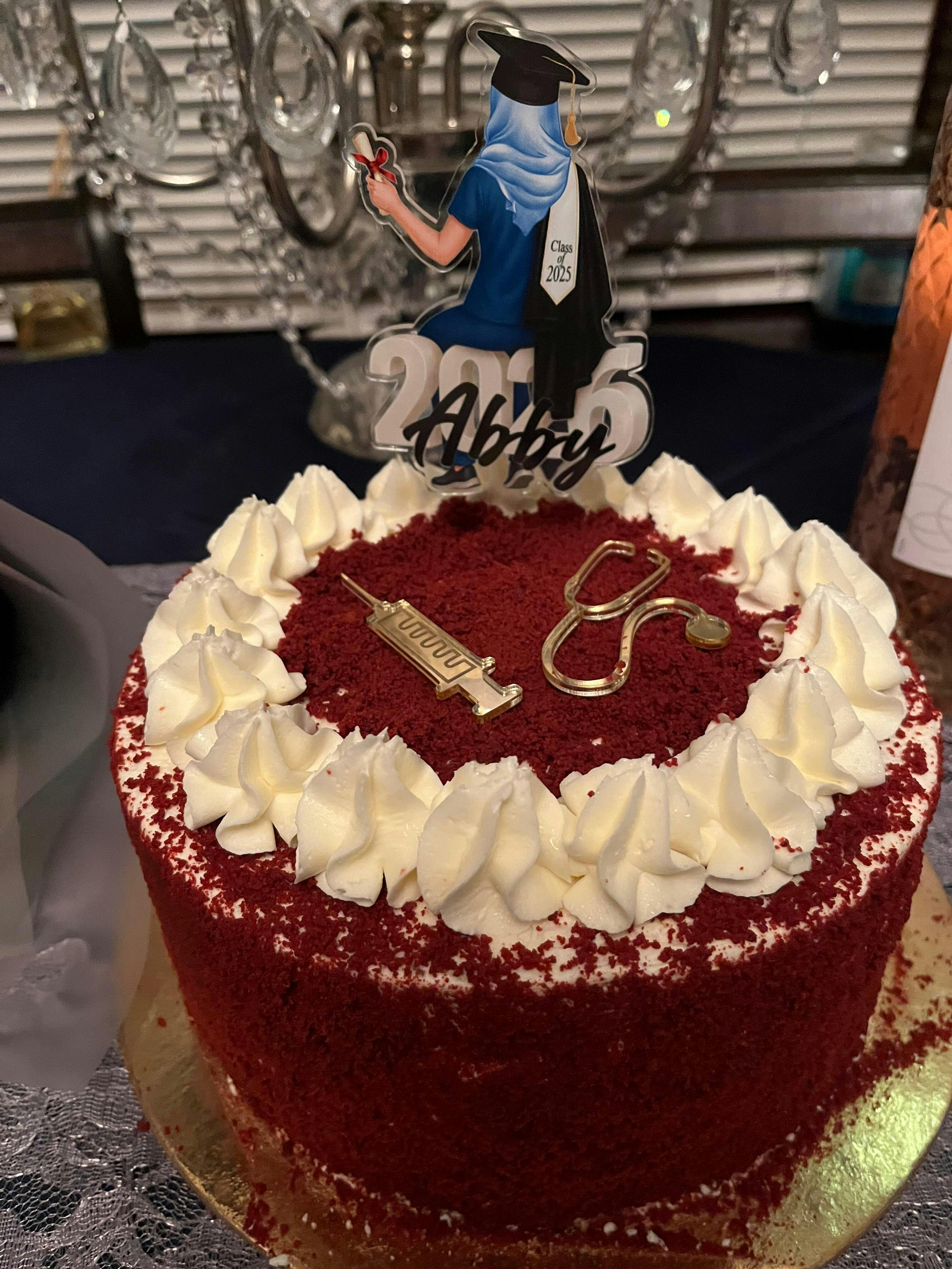 Hi Anamarie, thank you so much for your lovely review! We are thrilled to hear that our Red Velvet Cake was a hit at your daughter's graduation. We always aim to deliver on time and provide delicious, not-too-sweet treats. Thank you for choosing us and we hope to serve you again in the future! Kind regards, The PV Team