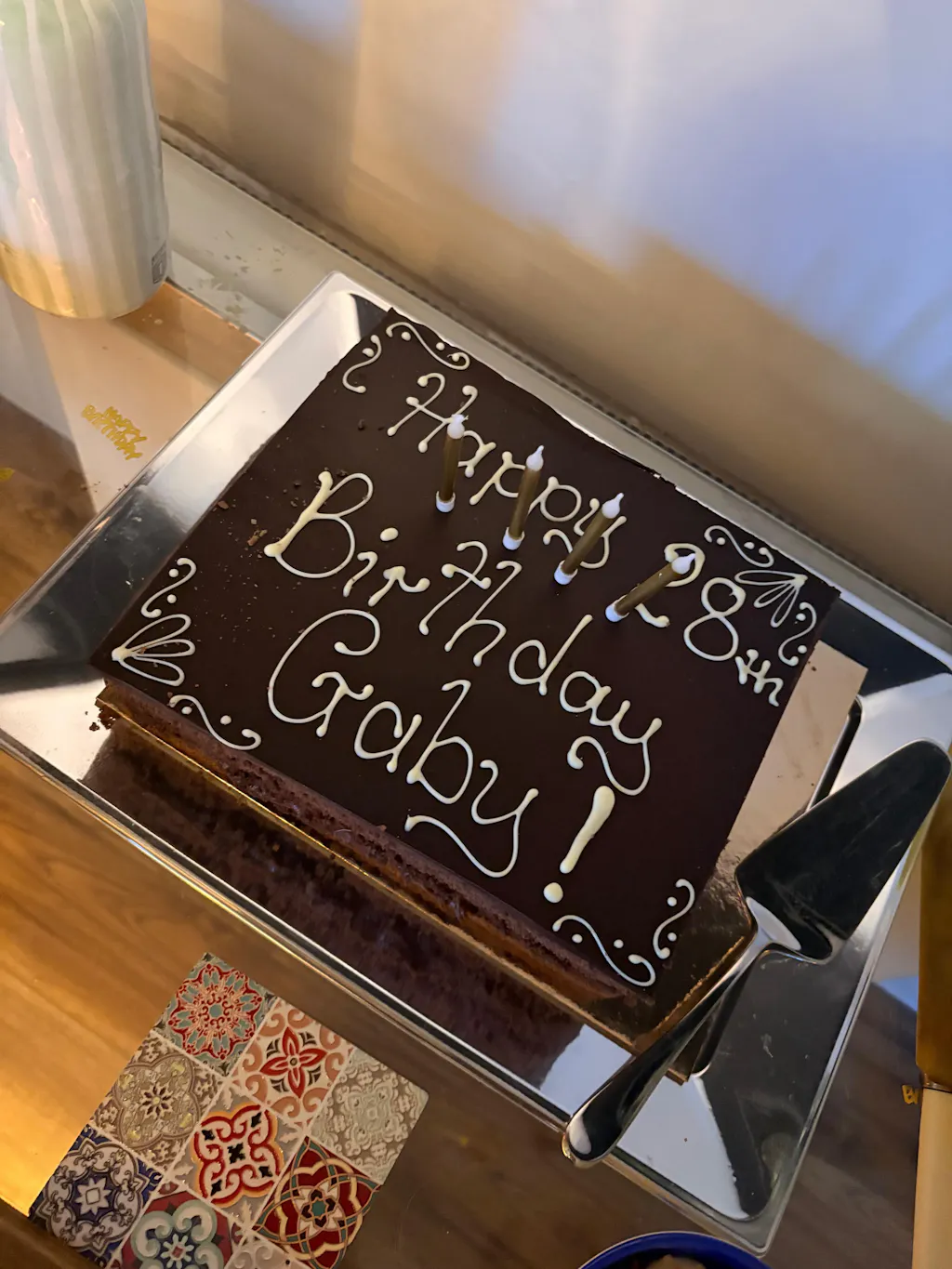 Dark Chocolate Ganache Topping – A glossy, elegant finish.