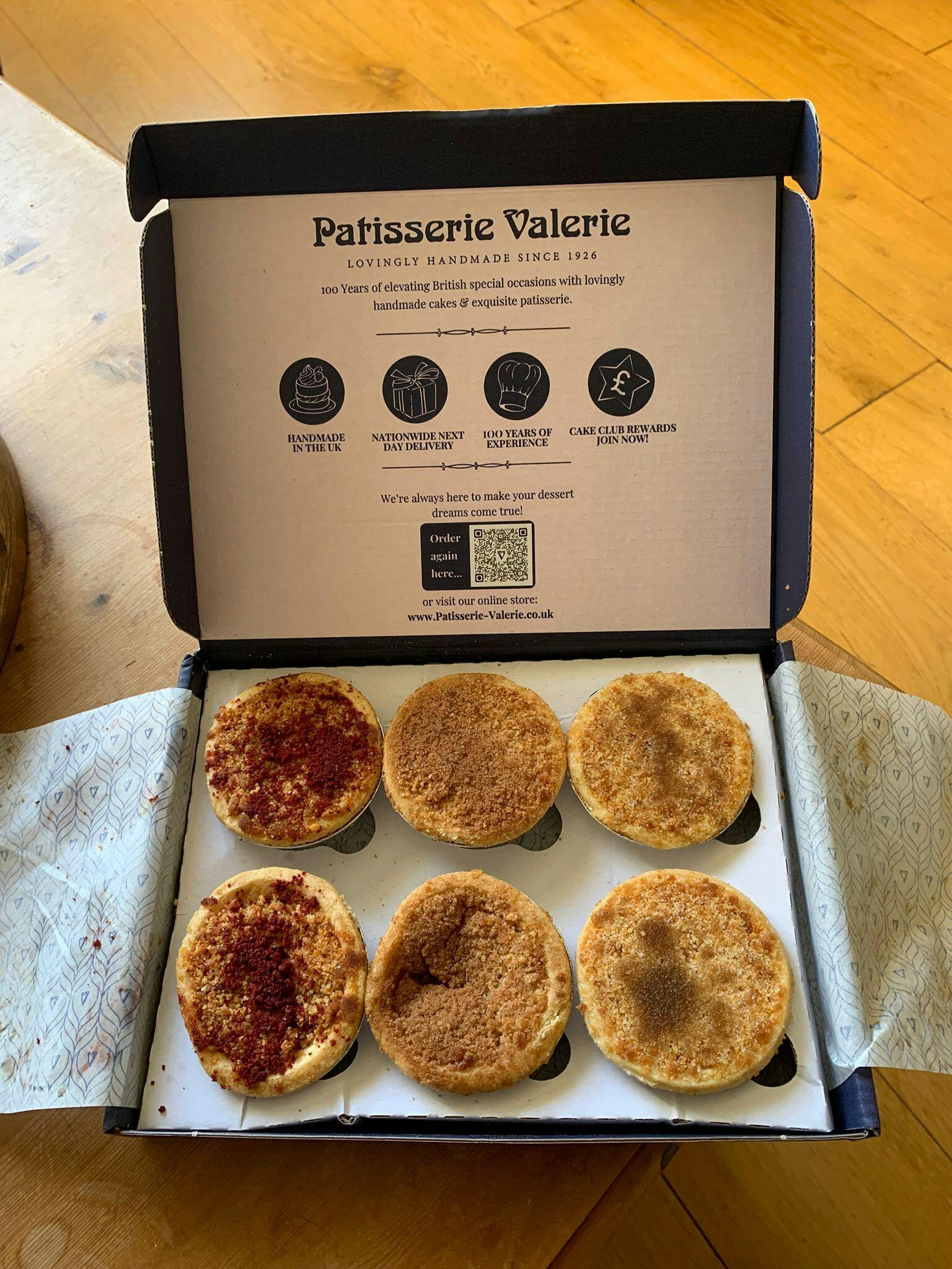 Pastry Mix (Culinary Flour (Wheat, Calcium Carbonate (E170), Iron, Niacin, Thiamin), Butter Oil (Milk), Sugar, Free Range Pasteurised Whole Egg, Wheat Starch, Salt, Thickener (E415))), Diced Apple Delifruit (Jonagold Apple Dices, Jonagold Apple Puree, Apple Juice From Concentrate, Sugar, Modified Starch E1442, Antioxidant E300, Acidity Regulator E327, Preservative E202, Acid E330, Natural Flavouring)),Crumb (Plain Sponge Mix ((Sugar, Wheat Flour (With Calcium, Iron, Niacin, Thiamin), Dried Whole Egg, Wheat Starch, Raising Agents, (E450 Vii), (E501 Ii), (E500 Ii), (E341 I), Emulsifiers (E475, E481, E475, E472b, E471, E481, E472e), Dried Egg White, Skimmed Milk Powder), Water, Rapeseed Oil (Rapeseed Oil, Anti Foaming Agent (E900), Release Agent (Water, Vegetable Oil, Emulsifier (E476), Thickener (E903)), Sugar, Culinary Flour (Wheat, Calcium Carbonate (E170), Iron, Niacin, Thiamin), Cake Margarine (Vegetable And Hydrogenated Vegetable Oil, Water, Salt, Emulsifier (E475), Flavourings, Colours (E160b, E100)), Cinnamon (Ground Cinnamon (Cassia), Snow Sweet ([Dextrose, Cornflour, Fully Hydrogenated Vegetable Fat (Palm), Flavouring Natural).