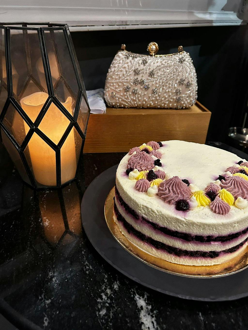 - Blueberry Compote & Fresh Cream Layers – Sweet and tangy, with whole blueberries for a juicy bite.