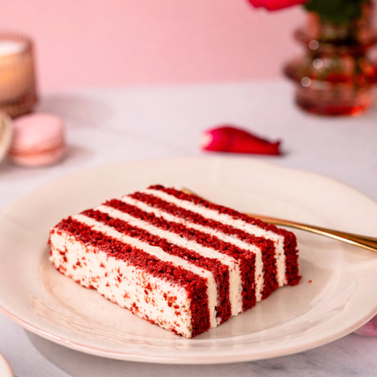 Red Velvet Cake Slices (x2): A rich, cocoa-infused red velvet sponge layered with smooth, velvety cream cheese icing, delivering a perfectly balanced bite that’s both indulgent and refined.