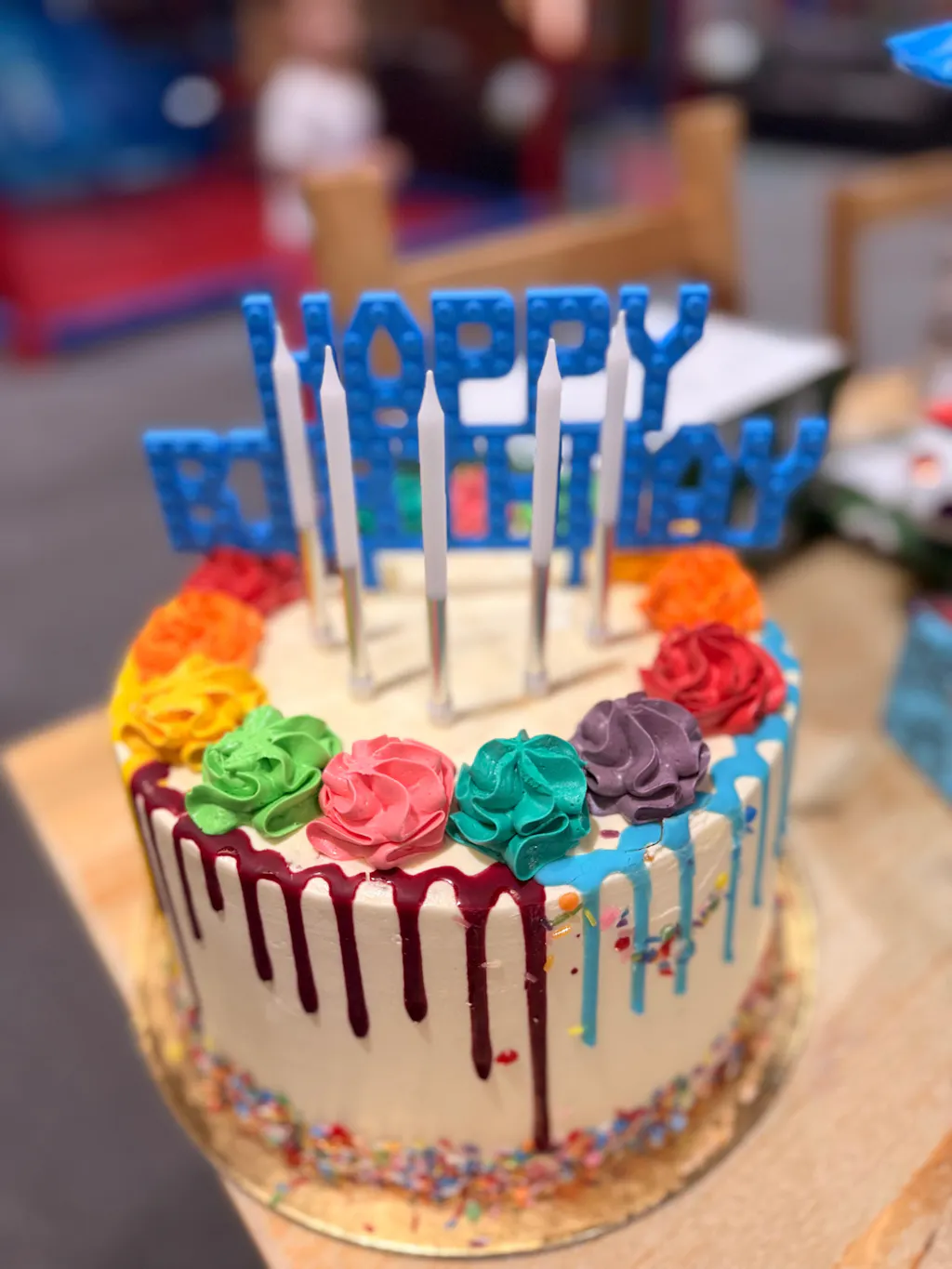 Topped with Seven Rainbow Buttercream Swirls: A bold, show-stopping flourish to complete the design.