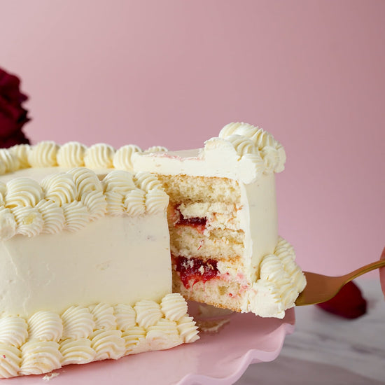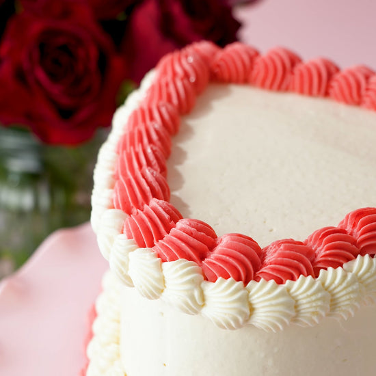 Get ready to fall in love with our all-new Heart Cake! Whether you're surprising your sweetheart or simply treating yourself (because why not, right?), this cake comes in a variety of colours and is sure to be a crowd-pleaser. And let's not forget the gorgeous and timeless lambeth icing that gives it that classic touch. This cake features plain sponge, filled with fresh cream and strawberry filling and coated with lashings of vanilla Swiss buttercream.
